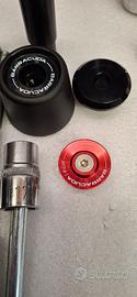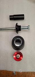 Kit tamponi paratelaio Barracuda per Aprilia Tuono V4 1100. Fate attenzione che il perno con testa da 17, come da foto va sul lato sinistro. Il tampone con il perno da 16 va sul lato sinistro ovvero lato scarico. Come nuovi, vendo per cambio moto.