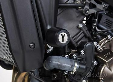 Kit tamponi paratelaio per Yamaha XSR 900 dal 2022. Marca Urbano Bruni. Protezione per la moto e miglioramento estetico Realizzati in resina acetalica nera di alta qualità con inserto in alluminio satinato, nessuna modifica alle parti originali. Perfetti, nemmeno un graffio. Usati una sola stagione.