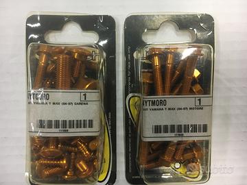 Vendo kit viteria in Ergal x carena (48 pezzi) e kit viteria in Ergal x motore (16 pezzi) marca Lightech x Yamaha T-MAX' 01/07,colore ORO,condizioni nuovo,ancora sigillati.