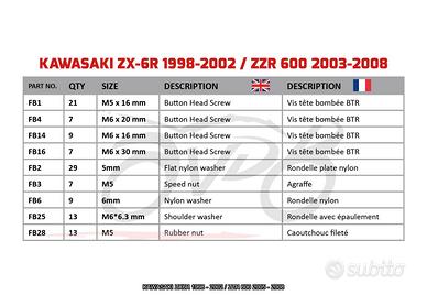 Kit viti per KAWASAKI ZX6R / ZZR 600 1998 - 2008