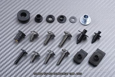 Un ottimo kit aggiuntivo per rimontare gran parte delle tue carene in caso di smarrimento o sostituzione di alcune viti. Una descrizione completa e numerata, che elenca tutte le parti fornite in questo kit e ti mostra a che livello usarle sulla tua bella, vi sarà fornita per facilitare l'uso.