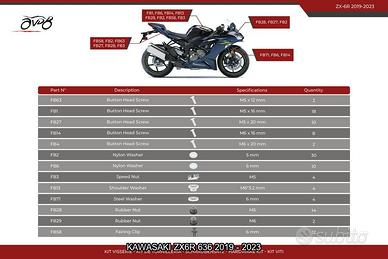 Un ottimo kit aggiuntivo per rimontare gran parte delle tue carene in caso di smarrimento o sostituzione di alcune viti. Una descrizione completa e numerata, che elenca tutte le parti fornite in questo kit e ti mostra a che livello usarle sulla tua bella, vi sarà fornita per facilitare l'uso.