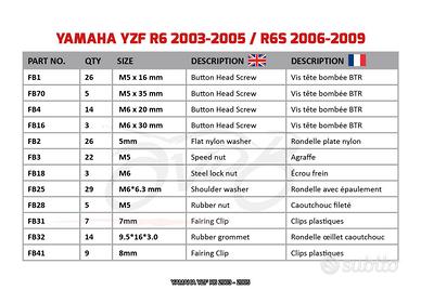 Kit viti specifico per YAMAHA YZF R6 2003 - 2005