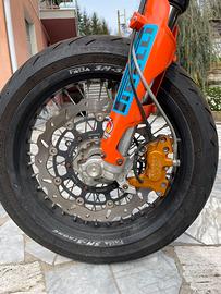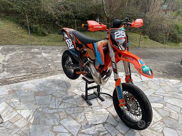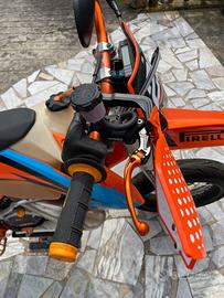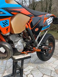 Vendo KTM 250 EXC 2T a carburatore. Moto con doppia omologazione a libretto Motard ed Enduro. Non ha mai fatto fuoristrada. Recentemente sono stati sostituiti acqua e tubazioni radiatore, pistone Wossner ed olio cambio. Impianto frenante Anteriore con pinza idraulica 16x18 Accossato + pinza Beringer e disco da 320mm, impianto frenante posteriore originale, paramotore e para telaio in carbonio, fanale anteriore a led, marmitta KTM by FMF e silenziatore Scalvini, Gomma anteriore seminuova. Vendo per inutilizzo, moto pronta all'utilizzo. Bollo 2026 pagato. No perditempo, insieme cedo componenti originali, cerchi da enduro ed altro. Moto simile a ktm sxf sx-f sx smr exc tpi tbi 125 150 200 250 300 350 400 450 500 501 690 700 701