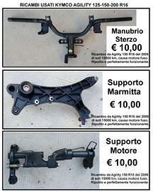 Vari ricambi usati (vedi foto e elenco) adatti a Kymco Agility R16 125/150/200, condizioni ottime e perfettamente funzionanti.