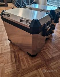 Valigie laterali originali in alluminio BMW GS con serrature uguali, provenienti dalla mia BMW R 1250 GS Adventure, in ottime condizioni. Compatibili anche con altri modelli: