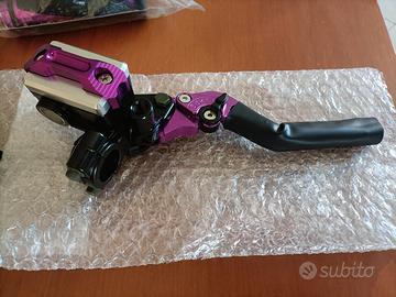 Leve viola, frizione e freno e manopole con tamponi. Sono nuove e non le ho mai utilizzate perché é stato un regalo di compleanno, solamente che la frizione sulla leva é a cavo e io l'avevo con la pompa. Tutto ancora nella confezione originale. Sono abbinate al manubrio che ho messo in vendita sempre su questo account, anche quello é stato un regalo di compleanno, mai usato perché ho venduto subito la moto per passaggio di cilindrata superiore.