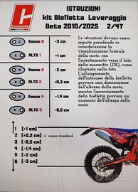Leveraggio Mono Ammortizzatore per Beta 2 e 4 tempi 125/ 250/ 300/ 400/ 390/ 400/ 430/ 450/ 480/ 490/ 520 RR Racing dal 2010 ad oggi , ricavato dal pieno in Ergal da la possibilità di regolare l'altezza della moto.