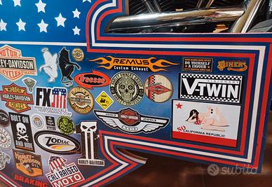 Vendo insegna decorativa per il garage o un locale. Roba artigianale. Grande 110x70 cm. Materiale simillegno, verniciato, con un sacco di adesivi in tema custom harley davidson. Ritiro a mano zona bassa Brescia. No spedizione.
