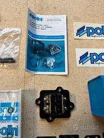 Lotto di ricambi Polini per scooter, composto da vari pezzi come da foto (lamelle, pacco lamellare, guarnizioni, minuteria, adesivi e istruzioni).