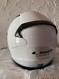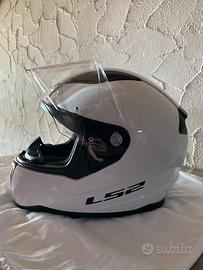Casco LS2 nuovo, mai indossato, di colore bianco, misura 36,5*26*27,5cm, col casco e compresa la scatola e i suoi adesivi rifrangenti
