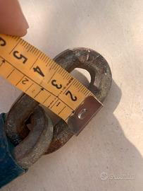 N.b. Come potrete notare dalle foto quella ruggine superficiale che vedete su lucchetto e su qualche anello di catena si può togliete una buona parte passndo con retina o carta vetro , il Lucchetto apre e chiude regolarmente.