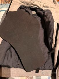 Utilizzato solo una volta per errata misura vendo ottimo giubbotto moto in cotone e rinforzato con fibre aramidiche, adatto per uso turistico cittadino. Vestibilità ottima e pratico con il suo cappuccio staccabile tramite zip e le sue tasche esterne ed interne. Protezioni su gomiti, spalle e schiena. Ottimo per periodi di mezza stagione e freddi.