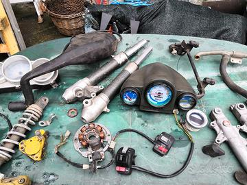 Disponibili diversi ricambi per Malaguti F12, strumenti completo di porta strumenti, forcella prima serie, forcella seconda serie, vaso espansione, carter motore uno con disco freno, un altro con tamburo, fornisco foto se interessati,alberi motore rms nuovi, forcella completa di piastra non in foto, cerchio anteriore e posteriore per disco freno prezzi da concordare