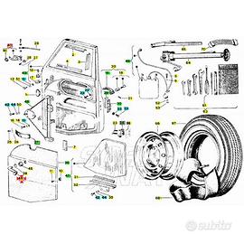 (R.14775) Vendo maniglia alza vetro del finestrino usataper Piaggio Ape Car P2 e P3 220 dal 1978 - Ape Poker benzina e diesel 420 dal 1993 - Ape Car Max diesel 220 e 420 cc dal 1972 con codice Piaggio 261413 , per applicazioni e spaccato vedere foto