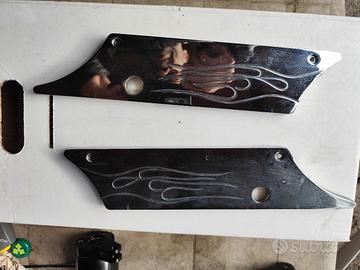 Maniglie moto Harley Davidson con fiamme, sa lucidare e tornano nuove. Per modelli dal 1993 al 2013. sostituiscono le originali con stesse viti.