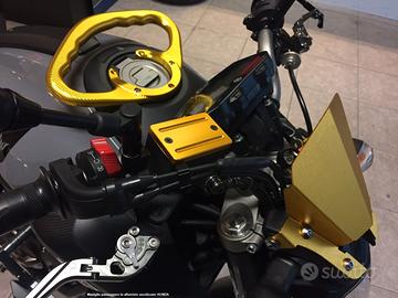 Realizzato in alluminio anodizzato, questo manico è fissato direttamente ai supporti del serbatoio, nei fori del tappo originale. Assemblaggio semplice e veloce.