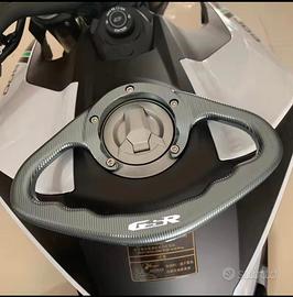 Vendo impugnatura per serbatoio per Suzuki GSR 600 ma può essere montata su altri modelli con lo stesso interasse di fori.