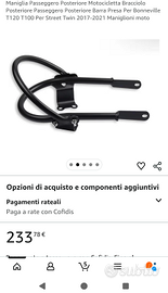 Maniglione Triumph Bonneville T100 e T120 Nero originale. Stato perfetto, neanche un graffio. Altre foto si richiesta