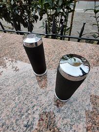 Manopole custom vintage lunghezza totale 12,50 cm, lunghezza interna 11,50 cm; diametro gas 29 mm; diametro manubrio 25 mm, montate su Harley D. spugna buona in una da sistemare un poco la cromatura.