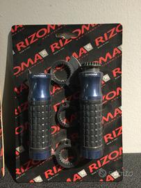 Manopole Rizoma Sport Line, disponibili in colorazione argento o blu.Applicabilità universale, non compatibile con Ride by Wire.