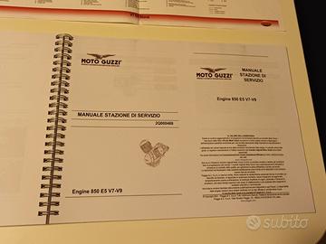 Manuale Stazione di Servizio Officina Moto Guzzi v7 850 e5 completo per veicolo (A4), motore (A4), catalogo ricambi (A4) e schema elettrico (A3). Manuali A4 rilegati in un volume con spirale. A3 sciolto. Come da foto. Prezzo non trattabile.