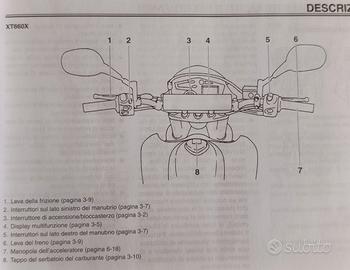 Vendo manuale USO E MANUTENZIONE YAMAHA XT660R - XT660X Adatto per i modelli XT 660 R, 660 cm³- Anno 2005/2006 XT 660 R, DM01, 660 cm³ Anno 2004 XT 660 X, 660 cm³- Anno 2004 /2006 in italiano condizioni perfette.