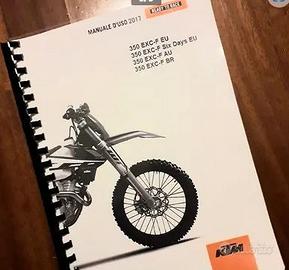 Buongiorno, dispongo di manuali cartacei di "Uso e manutenzione" stampati su fogli A4 in fronte/retro e rilegati con spirale in plastica, IN ITALIANO. Per KTM cross SX, enduro EXC 2 e 4 tempi, vari anni e modelli (xc, six days, xcr, Duke). Cilindrate 125, 150, 200, 250, 300, 350, 400, 450, 500, 530, 690, e altre. Anni 2006, 2007, 2008, 2009, 2010, 2011, 2012, 2013, 2014, 2015, 2016, 2017, 2018, 2019, 2020, 2021, 2022, 2023, 2024