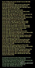 ApriliaBenelliBetaBMWBuellCagivaDucatiGileraHarleyDavidsonHondainnocentiLambrettaKawasakiKTMMalagutiMotoGuzziMotoMoriniMVAgustaRiejuSuzukiTriumphYamaha .