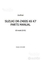 Vendo manuali d'officina per Suzuki DRZ400 DRZ400E 400S 400SM in ITALIANO o INGLESE 2000-2006 con immagini perfette ad alta risoluzione oppure ho anche il manuale officina specifico per il modello DRZ400S specifico per il modello DRZ400SM o specifico per il modello DRZ400E e esplosi per i tre modelli S-SM-E