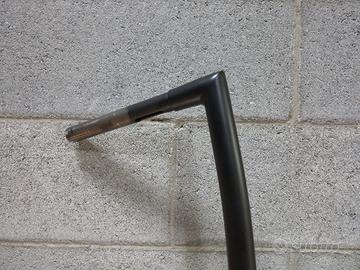 Manubrio aftermarket per Harley Davidson, nero opaco con predisposizione per acceleratore elettronico e fori per cablaggio interno. Altezza 12 pollici, lunghezza 78 cm, diametro 32 mm anche zona riser.
