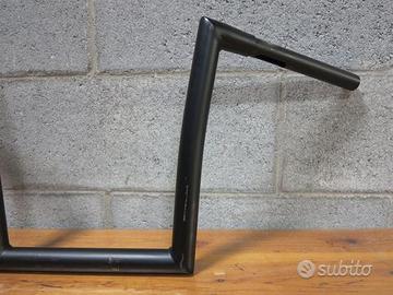 Manubrio aftermarket per Harley Davidson, nero opaco con predisposizione per acceleratore elettronico e fori per cablaggio interno. Altezza 12 pollici, lunghezza 78 cm, diametro 32 mm anche zona riser.