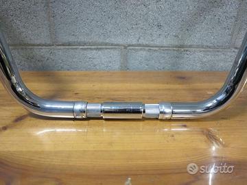 Manubrio aftermarket per Harley Davidson, specifico per modelli con riser a coperchio singolo. Diametro 25,4 mm, diametro visibile 32 mm, altezza 36 cm, lunghezza 91 cm.