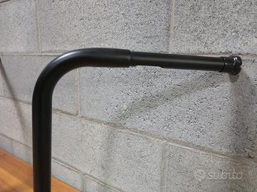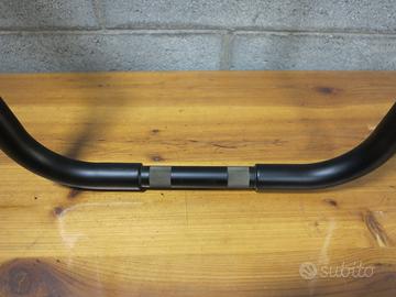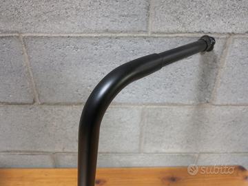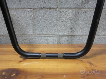 Manubrio Ape Hanger per Harley Davidson, colore nero opaco con fori per passaggio cavi interni. Altezza 16 pollici, larghezza 97 cm, diametro manopole e fissaggio riser 25,4 mm, diametro manubrio 32 mm. Manubrio in ottime condizioni, mai montato.