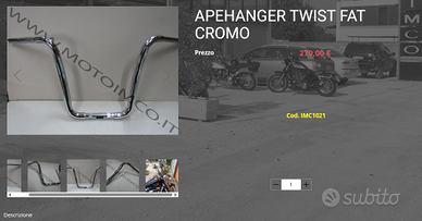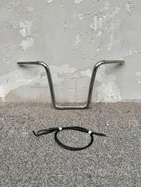 Vendo per cambio progetto manubrio ape hanger twist fat cromo. In foto le misure, vendo assieme ai cavi acceleratore necessari al montaggio. Manubrio acquistato da moto IMCO, pagato da solo 270 euro. Ritiro a mano su napoli o spedizione in tutta Italia.
