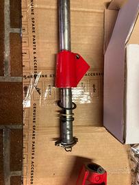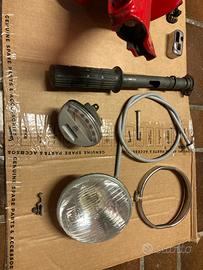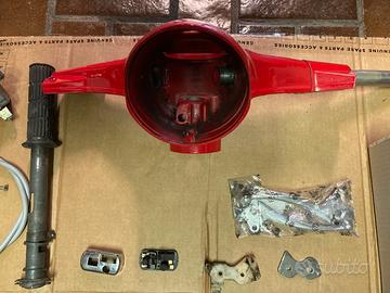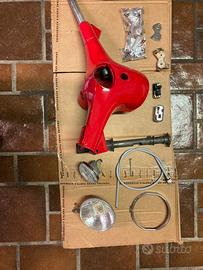 Vendo manubrio vespa 125 primavera et3 in ottime condizioni. Colore rosso Perfettamente integro, nessuna crepa o saldatura. Filettature M5 per viti leve riportate con helicoil in acciaio Presente solo il foro per il passaggio del cavo gas rapido sul fianco destro, basta stuccarlo prima di verniciarlo Completo di tutto quello che vedete in foto Faro anteriore con staffa di bloccaggio Faro posteriore nuovo in scatola Leve nuove Tachimetro originale con Cavo tachimetro nuovo Tubo acceleratore originale Tubo 4 marce integro Rondelle e spessori per il corretto montaggio Devioluci e modanatura cromata Ghiera faro cromata Manca solo il blocchetto chiave ma facilmente reperibile Adattabile a 50 90 r n l special pk malossi pinasco polini vmc quattrini falc zirri
