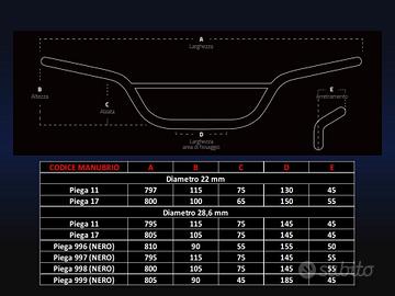 Ulteriori 4 pieghe disponibili nella misura da 28,6 mm sezione variabile solo in colorazione NERO.