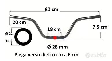 Manubrio moto piega bassa diametro attacchi 28mm diametro comandi 22mm, il manubrio è nuovo ma mai montato. misure nella foto allegata