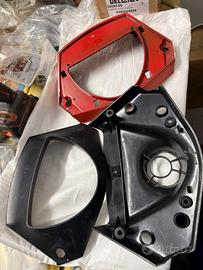 Vendo come da titolo corpo manubrio per Vespa T5 , tutto originale, pari al nuovo, (modello con supporto specchietti al manubrio e non con le staffe, vedasi foto),completo di pulegge, anelli elastici, spessori e manopole. Con esso cedo anche le plastiche (inferiore, intermedia e superiore) le stesse presentano chiari segni di usura e mancano di un sostegno della vite inferiore, pertanto per trasparenza, si rappresenta che non sono in buone condizioni, il costo è riferito al solo corpo manubrio escludendo le plastiche che vengono fornite a titolo gratuito.