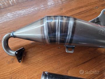 Nuova mai montata fondo di magazzino anni '90, specifica per Piaggio Quartz. per Motori Piaggio-Gilera, silenziatore carbonio scomponibile. Con silenziatore in carbonio con guarnizione.