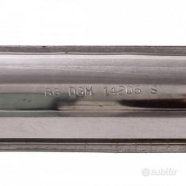 (R.21329) Vendo silenziatore di scarico cromato nuovo per ciclomotori vari vintage con motore Franco Morini MO4 o Minarelli marca CBA con codice 20504120 con diametro interno imbocco 22 mm e lunghezza 495 mm con distanza da attacco 185 mm , per misure e scansione catalogo vedere foto