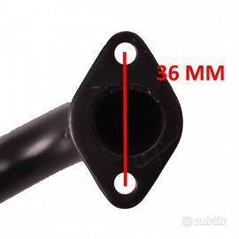 (R.21326) Vendo scarico nuovo per ciclomotori vari vintage con motore Franco Morini MO4 tipo Negrini marca CBA con codice 30787200marchiata DGM 36927 S di colore nero con leggeri segni di magazzinaggio con lunghezza totale 733 mm , interasse foro 36 mm e distanza dai due fori di fissaggio 440 mm , per scansione catalogo e misure vedere foto