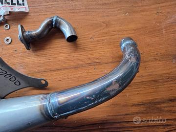 Marmitta Espansione Giannelli Metal Piaggio Gilera ZIP NRG NTT Typhoon NUOVA FONDO DI MAGAZZINO direttamente dagli anni '90 Nuova e introvabile già all'epoca quando era ancora in produzione. La mitica Giannelli Metal detta Giannellone, introvabile in queste condizioni NUOVA MAI USATA, completa di collettore, per tutti motori piaggio gilera zip nrg ntt typhoon free etc... Non so perchè ma il collettore non ha la staffetta dove si attacca la molla che regge l'espansione dal collettore, bisognerebbe fargliela