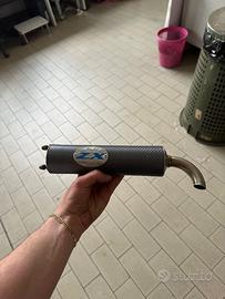marmitta leovince usata rimessa a nuovo con fondello in carbonio grigio con lo stemm per malaguti non piaggio cilindro orizzontale