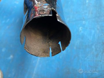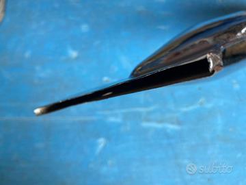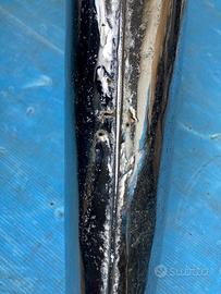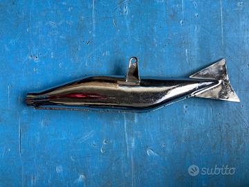 Marmitta moto epoca anni trenta.Lunghezza cm62 diametro d’entrata cm 4,5.Distanza attacco telaio da inizio marmitta cm 29,5.Da sistemare fori e rifare cromatura.euro100 Possibile spedizione ordinaria con Poste Italiane.