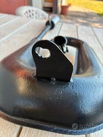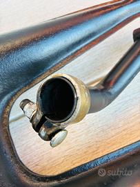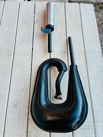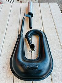 Anni 90 con silenziatore scomponibile , imbocco collettore 22 mm riverniciata nero opaco alte temperature, nessuna bozza , perfetta. Forse Adattabile anche a piaggio ciao togliendo i pedali , anche perche ha la staffa di fissaggio sul prigioniero della testata Prezzo non trattabile grazie