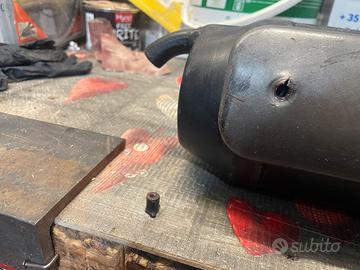 Presenta una piccola ammaccatura su paracalore e si è dissaldata la sede della vite che regge la parte amteriore (vedi foto), basta comunque un punto di saldatura per sistemarla.