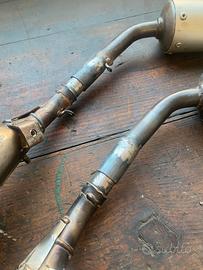 Le marmitte sono usate ma in buono stato, non hanno bozze, sono state svuotate e rifatti gli innesti degli spilli sia nell espansione che nel silenziatore.