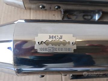 Vendo marmitte Mcj omologate a suonorita' fissa con certificazione e Db killer compresi i due spessori interni alle marmitte per i collettori ( uno è integro l'altro un po' slabbrato, ma non fanno parte delle marmitte, li regalo io) ,per Harley Softail FLHC e FLHXS dal 2018