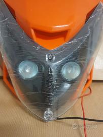 Mascherina portafaro/cupolino anteriore per moto KTM enduro-motard. Nuova, ancora con cellophane. Completa di luci